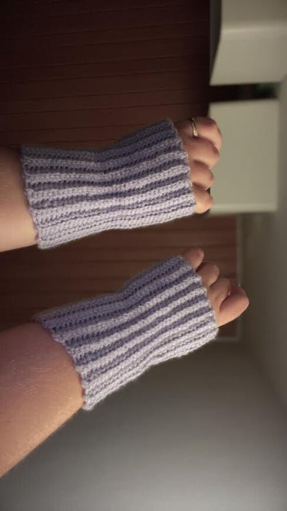 Handmade crocheted handwarmers, available in different sizes and colors.